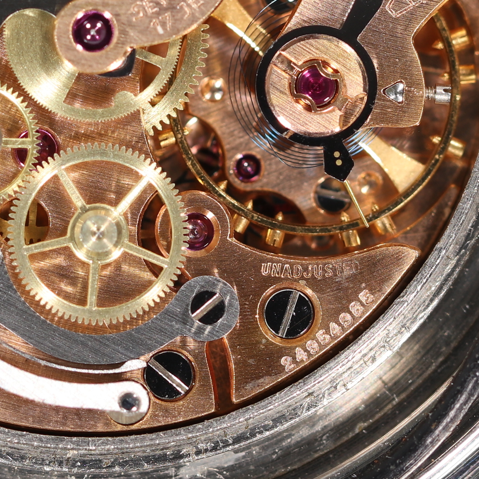 An affordable and correct example of this rare reference. The original pushers and crown are unusual to find, and this watch has all original parts. The dial and bezel are patinated but original.